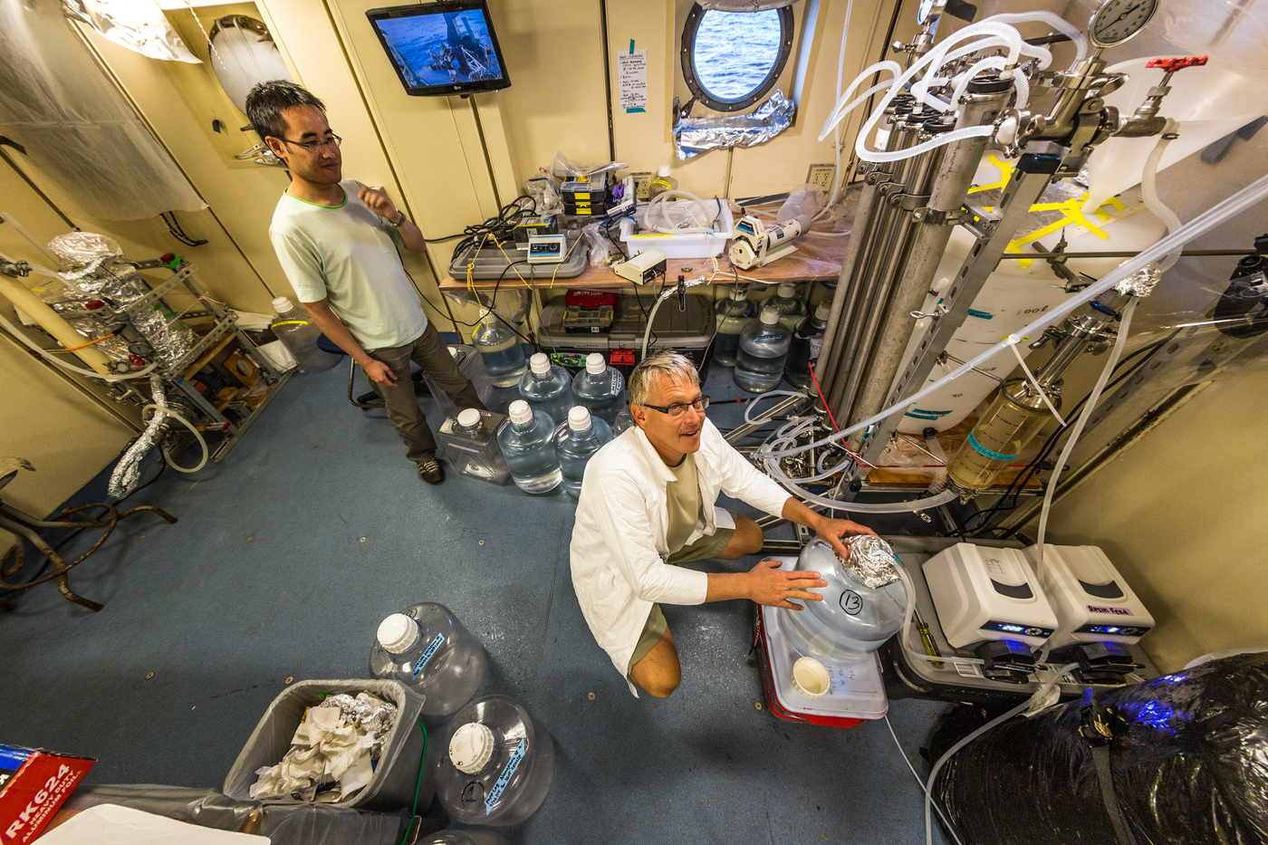 McCarthy and others are also taking a closer look at the dissolved organic carbon that permeates the ocean. Dissolved carbon doesn’t sink as particles of algae or bacteria do, but rather mixes slowly into the deep ocean, taking much longer to reach depths that can effectively seal the carbon from the atmosphere. Still, its sheer volume makes it a major player in the pump, said Craig Carlson, professor of microbial oceanography, ecology, evolution, and marine biology at UC Santa Barbara. Although only accounting for about 20 percent of the annual global export via the biological carbon pump, the inventory of dissolved organic matter carbon pool is huge, some 200 times larger than the organic particle pool, Carlson said. “Tracking organic matter in the dissolved phase could be very important for understanding carbon storage.”