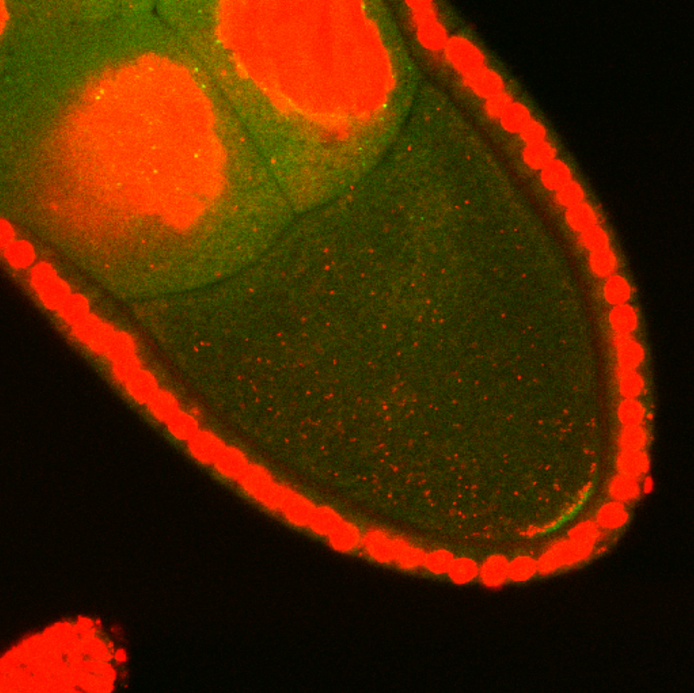That was the first of many Wolbachian mysteries explored by Sullivan and his collaborators. In 2004, along with postdocs Laura Serbus and Shelbi Russell and then-Ph.D. student Patrick Ferree (now an associate professor of biology at Claremont McKenna College), he began tackling another puzzle: how Wolbachia gets into the germ line, the cells that give rise to eggs and sperm. It’s a trek the microbes have to make in each new generation of insects they infect. They start out scattered throughout the egg cell inherited from the infected mother, but soon after fertilization, the bacteria begin migrating to the posterior end of the egg, the part that will become the germ tissue of the embryonic fly.