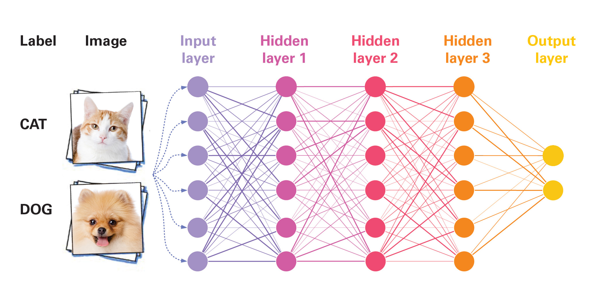 One surprising new example arises in machine learning. In recent years, deep neural networks—“deep” refers to a great number of layers—have had good success in realms like image recognition and computer chess and go. These networks loosely imitate the human brain, in which one layer of neurons might recognize individual pixels, while a deeper one pieces the pixels into curves, the next organizes them into trunk, limbs, and head, and the deepest layer finally recognizes the animal as a cat.