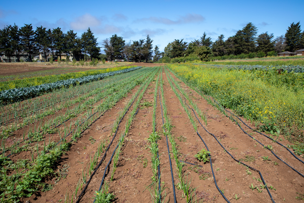 Large rectangular fields stretch out from both sides of the narrow path, some lined with organized rows of ankle- to waist-high leafy plants and others full of fertile, loose soil ready to plant. A hundred yards away, a student wearing a wide-brimmed straw hat kneels between rows of dirt mounds. That five-acre field, Philpott explains, is typically dedicated to research, where scientists study different farming practices, testing new methods of irrigation, soil management, or pest control. “Last year in the strawberries,” she said, “we had some engineers trying out new soil nitrate sensors to monitor the movement of nitrogen, a very important nutrient for crops.”