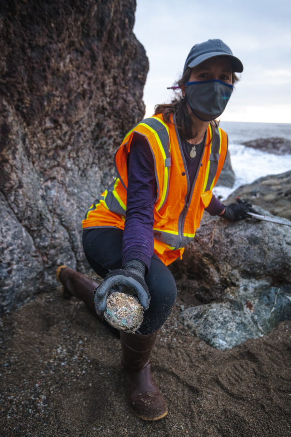 When the drone footage identified areas with abalone likely buried in sediment, Bragg mobilized colleagues from MARINe (Multi-Agency Rocky Intertidal Network, a consortium of organizations that monitor rocky intertidal ecosystems along the entire Pacific coast of North America) to help her unearth about 200 black abalones and escort them to UCSC’s Raimondi-Carr Lab to recover. Later that summer, she released her rescue abalone back into the wild in different—and hopefully safer—coastal sites.